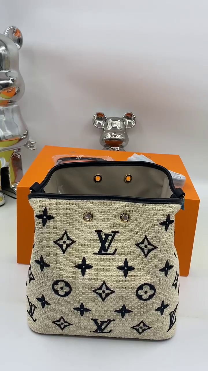 Louis Vuitton's New Lafite Cotton Embroidery N é ONO é Bucket Bag M23080 Size: 26 * 26 * 17.5cm