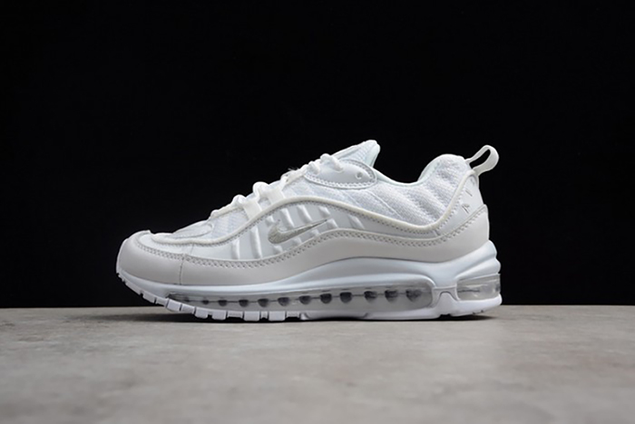 NIKE AIR MAX 98 "TRIPLE WHITE" Pure Platinum-Black-Reflect Silver 640744-106