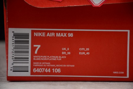 NIKE AIR MAX 98 "TRIPLE WHITE" Pure Platinum-Black-Reflect Silver 640744-106